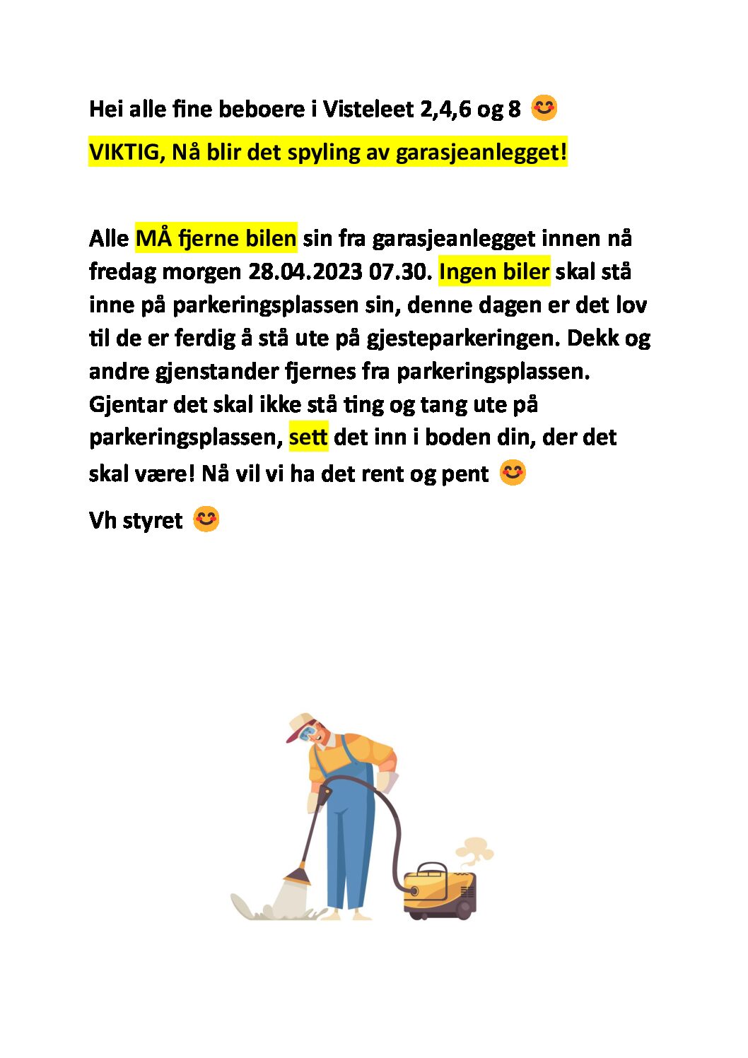 N.B SPYLING AV GARASJEANLEGGET 28.04.2023 klokken 07.30( les innlegg)